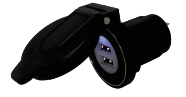 De USB-poort is voorzien van een rubberen deksel en een rechthoekige frontplaat die kan worden weggelaten. Vernikkelde messing aansluitingen voorkomen corrosie en het deksel beschermt de contactdozen tegen vuil en vocht als ze niet worden gebruikt. Geschikt voor auto's, campers, campers, caravans, boten, motorfietsen of elk voertuig met 12V / 24V.